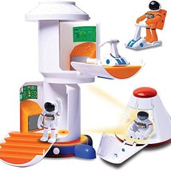 - Space Shuttle with lights, sounds, and rolling wheels Open the cockpit, put the astronaut on the seat and close the door Press the button to start the light and engine Flying to the destination, open the cockpit door and place the astronaut on the extended rotating manipulator to explore the universe