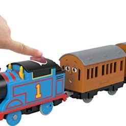My 19 month old son sat and just watched this train for so long! He was memorized by the sounds and effects of it. We were pleasantly surprised at how realistic the train looked when we took it out of the box. I wish there were written instructions but it’s easy enough to figure out from the pictures on the box. If you put water, steam comes out as the train goes around and that’s super cool! It does have a slight smell to it but not for long. It would be even better if it was easy to get the train on the track. You have to make sure each wheel is on properly before starting but once it’s on and going, it doesn’t come off!